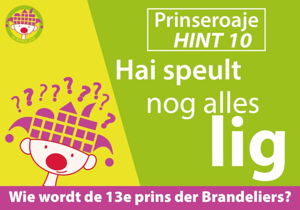 Opnieuw een bonushint voor het Prinseroaje. Nog maar even, en dan volgt de bekendmaking van de 13e Prins der Brandeliers! Weet...